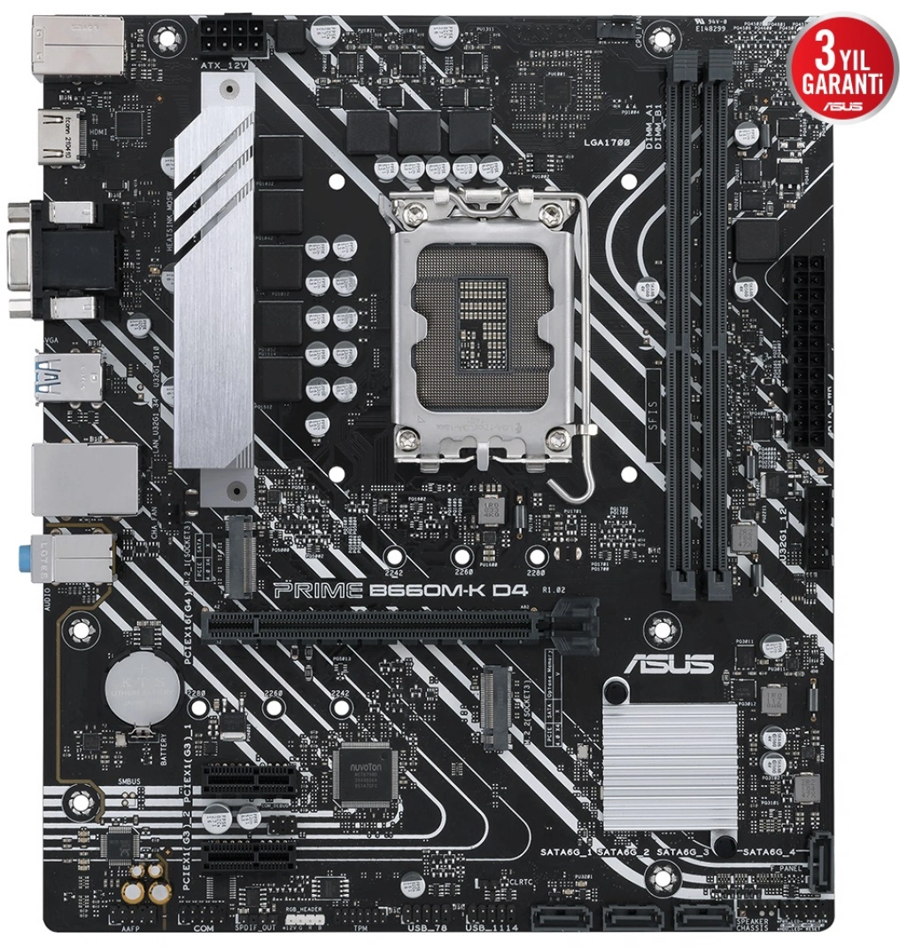 ASUS PRIME B660M-K D4 DDR4 5333(OC) M.2 mATX 1700p açıklaması