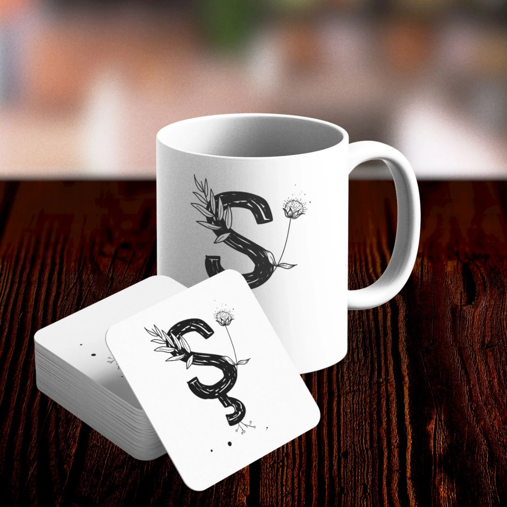 Ş Harfi Tasarımlı Kupa ve Bardak Altlığı Seti